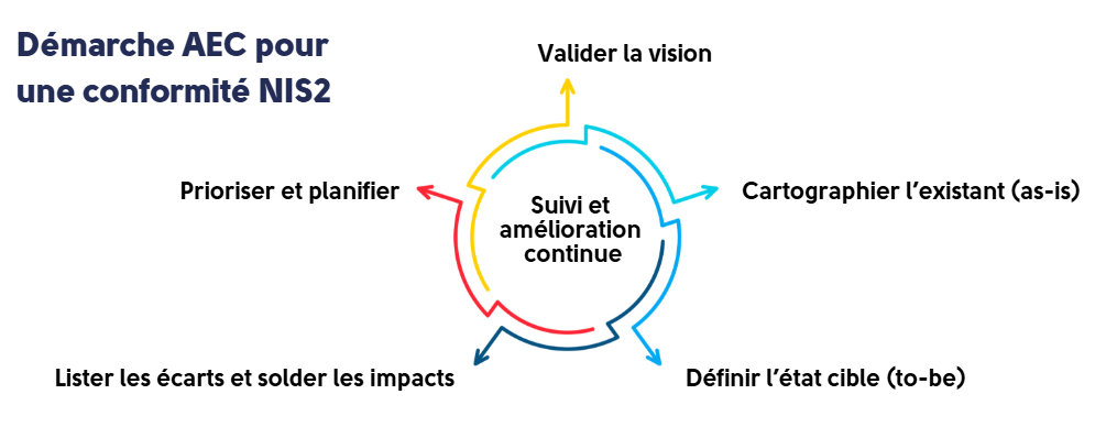 En d’autres termes, l’AEC n’est pas seulement un support : elle devient un levier de conformité, mais aussi un levier de création de valeur. En adoptant cette approche, les organisations peuvent non seulement répondre aux obligations de NIS2, mais également augmenter leur agilité, maîtriser leur complexité, optimiser leurs investissements et renforcer la confiance (clients, partenaires, autorités).