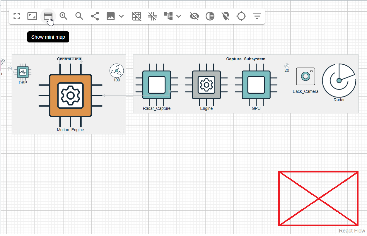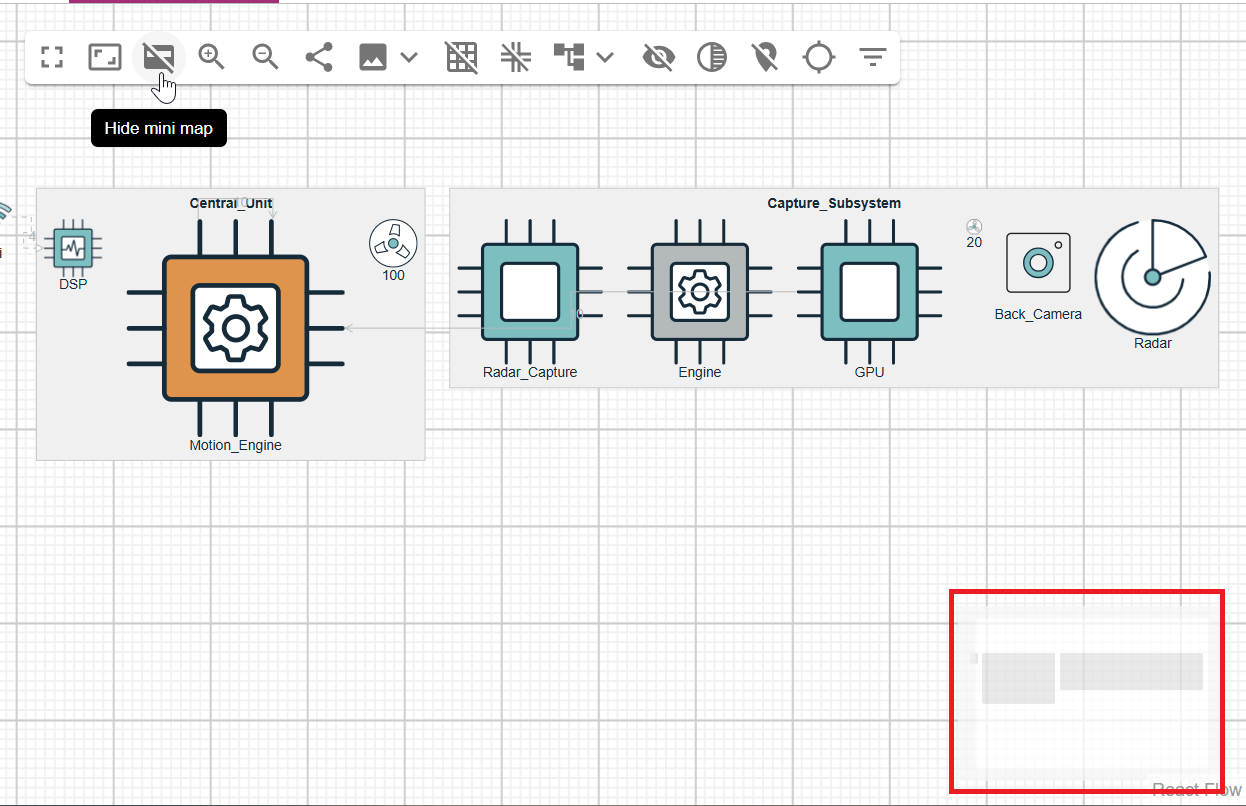 While the minimap provides essential spatial orientation for large-scale diagrams, it can obstruct the representation on smaller displays or high-density layouts.
